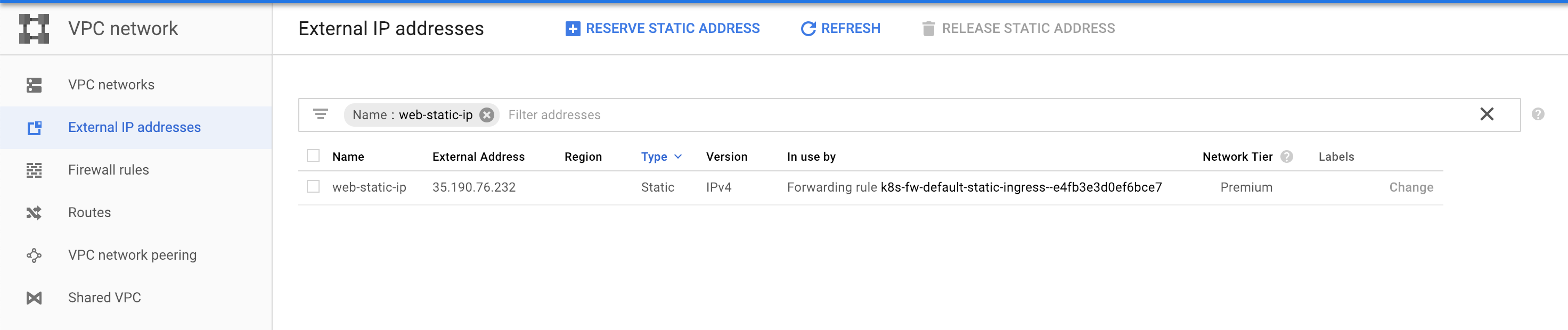 Reserve a static external IP address named web-static-ip by running: